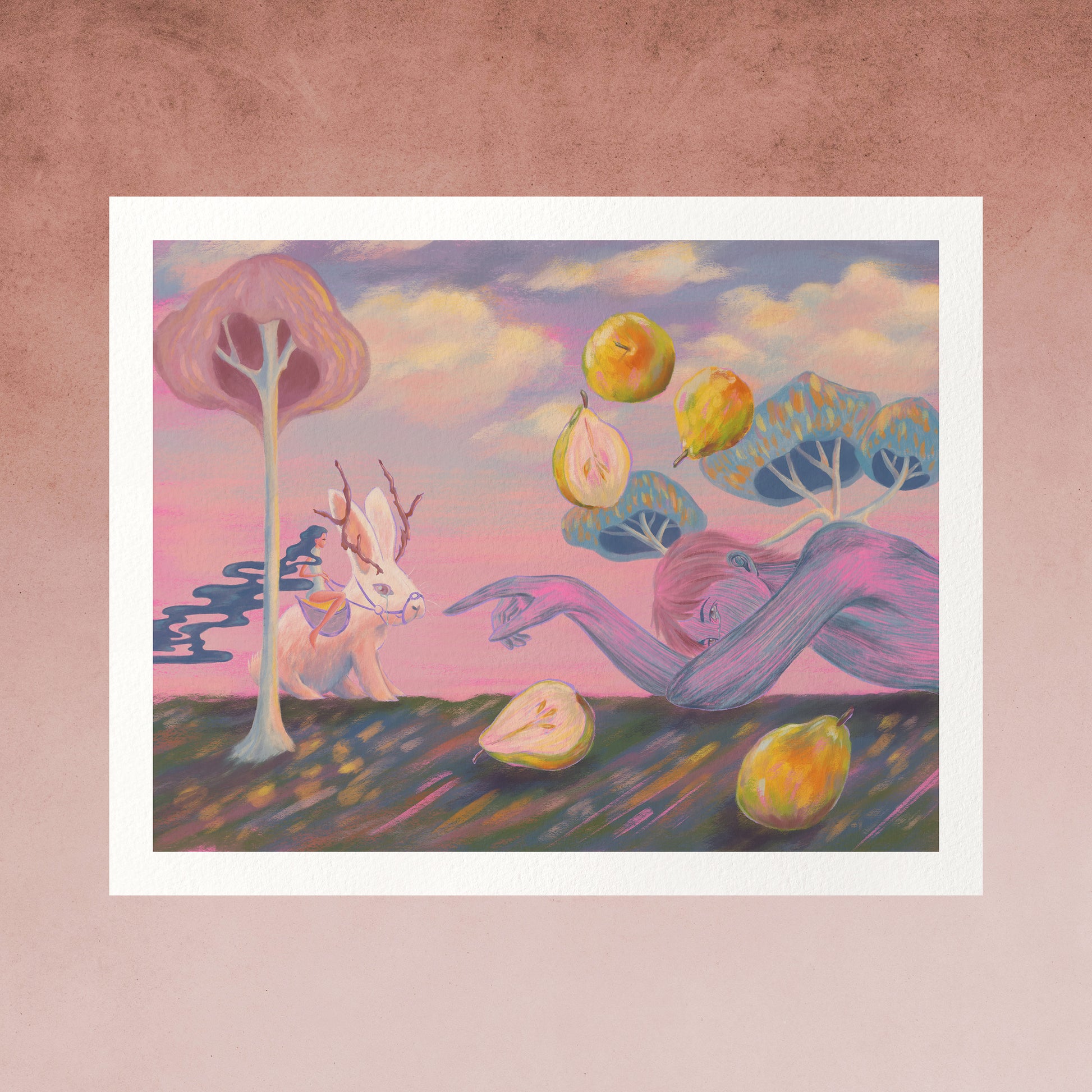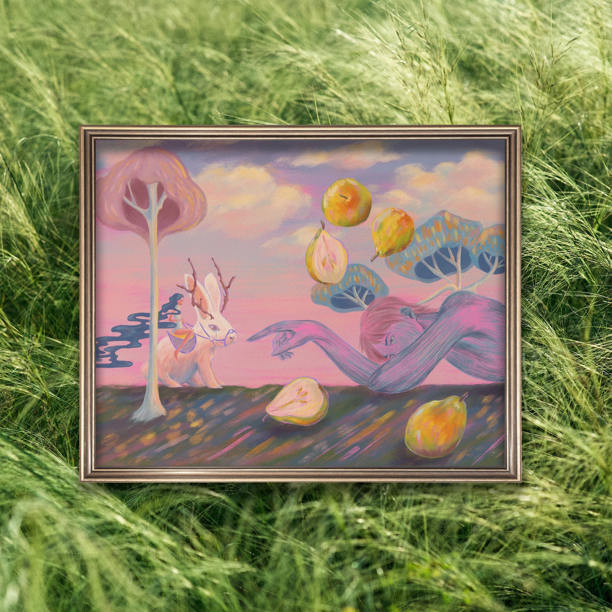"The Meeting" captures the pink blush marking the transition between summer and fall in a soft, enchanting dream.